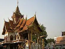 Wat Buppharam (Thai: วัดบุพพาราม, pronounced [wát bùp.pʰāː.rāːm]) is a Buddhist temple in Chiang Mai, Thailand. Founded in 1497 by King Mueang Kaeo,[1] the temple was where Kawila began a ritual circumambulation of Chiang Mai to reoccupy it after two centuries of Burmese rule.[2] Most of the temple buildings date to the late 1800s.[2] The temple is also known for its Burmese-style chedi, which was rebuilt in 1958, and a Lanna-style ordination hall made from teak and glass inlay mosaic, built in 1819.[3]