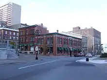 The original six buildings occupy a downtown block facing the Halifax waterfront bounded by Upper Water Street, Duke Street, Hollis Street and the Cogswell Interchange. Along with the adjacent waterfront buildings of Historic Properties and the Victorian commercial buildings of the Granville Mall, the site is one of the only intact blocks of 19th-century buildings in Downtown Halifax. It includes the oldest storefront in Halifax and the site of the famous 18th-century tavern “The Great Pontack”, where James Wolfe planned the siege of Louisbourg and Quebec. The buildings have housed commercial and retail tenants, but Armour group has said that the buildings are no longer economical and their replacements by facades should be seen as restoration.[1] The buildings on the block include the 1820 Harrington MacDonald-Briggs Building the oldest remaining commercial building in Halifax,[2] the 1861 Fishwick & Company Building,[3] the 1926 Imperial Oil Building[4] as well as the 1840 Sweet Basil Building, the last wooden "sailortown" building on Halifax's Water Street.