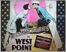 West Point is a 1927 American silent romantic drama film starring William Haines and Joan Crawford in a story about an arrogant cadet who finds love right before the all-important Army–Navy Game.