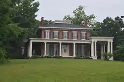 Westerly is a historic home located at the hamlet of Piffard in Livingston County, New York. It was built in 1850 by a local builder named McBride. The two story brick house set on a stone foundation with a hipped roof and widow's walk, is thought to have followed plans in a builders handbook of the period and features subdued Greek Revival characteristics with a hint of Italian Villa design elements. The house was built by prominent early settlers Major and Mrs. William H. Spencer, whose son William Spencer married Julia Tyler, daughter of President John Tyler and Julia Gardiner Tyler in 1869. After her death in 1871, the home was sold to the Wadsworth family.[2]