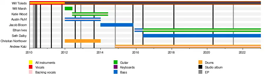 • Will Toledo – vocals, guitar, keyboards (2010–present), drums, bass (2010–2015)