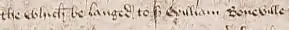John Bonville (died 1491), who married Alice Dennis. His father granted him a financial endowment in 1453,[17] and at death bequeathed him "substantial" property.[2]