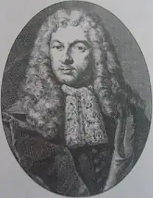 • Nicolaes Witsen (II) (1682-1746) married Anna Catharina Tulp, a daughter of Dirck Tulp. He lived Herengracht 550. In 1720 he remarried Johanna Eleonora Huydecoper. He inherited his uncle Nicolaas Witsen (I)'s library but was only moderately interested; 2,300 books were auctioned in 1728 and 1747.[11]