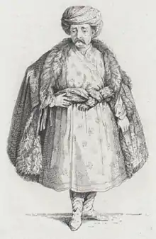 - ^ Sources vary greatly on this one, with his age at capture being given as 13, 14, 18 and 30. Considering he had some knowledge of music, and that some of his work is mentioned in the context of 1630 it would appear that the age of around 18 is most likely, and 30 is the least likely if he indeed served on the courts of two sultans previous to Mehmed IV. The Polish Biographical Dictionary notes that he received his freedom in 1657, about 19 years after his capture. This would indicate he was captured in 1638, thus he would have been either 28 (if born in 1610) or 22 (if born in 1616).