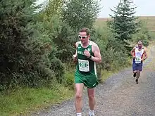 David Kelleher representing Republic of Ireland and Stuart McNally representing Great Britain competing in the World Masters Mountain Running Championships in 2022
