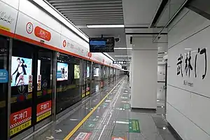 Wulinmen (Chinese: 武林门) is a metro station on Line 2 of Hangzhou Metro in China. It is located in Xihu District.[1][2] This station has become an interchange station between Line 2 and Line 3 when the station of Line 3 was opened on 20 July 2022.
