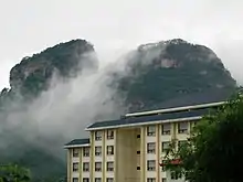 The Wuyi Mountains or Wuyishan[1] (Chinese: 武夷山; pinyin: Wǔyí Shān; Pe̍h-ōe-jī: Bú-î-soaⁿ; formerly known as Bohea Hills in early Western documents) are a mountain range located in the prefecture of Nanping, in northern Fujian province near the border with Jiangxi province, China. The highest peak in the area is Mount Huanggang at 2,158 metres (7,080 ft) on the border of Fujian and Jiangxi, making it the highest point of both provinces; the lowest altitudes are around 200 metres (660 ft). Many oolong and black teas are produced in the Wuyi Mountains, including Da Hong Pao ('big red robe') and lapsang souchong, and are sold as Wuyi tea. The mountain range is known worldwide for its status as a refugium for several rare and endemic plant species, its dramatic river valleys, and the abundance of important temples and archeological sites in the region, and is a UNESCO World Heritage Site.[2]