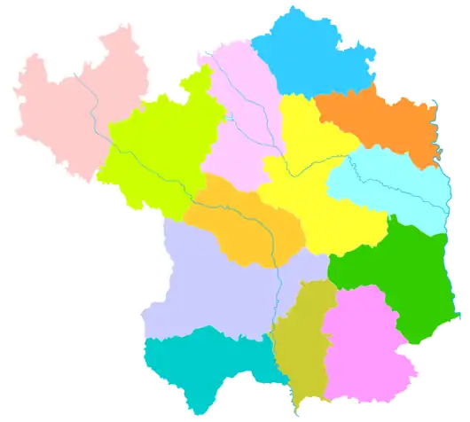 | Fu County | 富县 | Fù Xiàn | 156,800 | 4,179.9 | 37.51 |