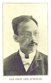 Yan Phou Lee (born c. 1861 – c. 1938) was a Chinese-born author who was the first Asian American to publish a book in English.[1] He graduated from Yale and published When I Was a Boy in China in 1887.