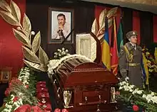 On 15 January 2007, Kushnaryov was accidentally shot in the liver while hunting with a group of friends and colleagues, and died two days later in a hospital in Izium. A two-day period of mourning was declared in Kharkiv over the death of the former governor.[4][5] Yevhen Kushnaryov was survived by his wife, two children, and two grandchildren.[1]