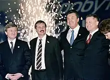 From left to right: Rinat Akhmetov, Taras Chornovil, Viktor Yanukovych and Yevhen Kushnaryov