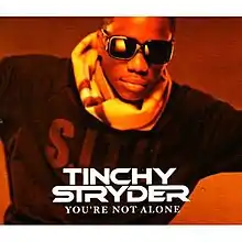 "You're Not Alone" is a song composed by British recording artist Tinchy Stryder. The song was released as the fifth and final single from Stryder's second studio album, Catch 22 on 2 November 2009.[1] On the week of the album's release, the track charted at No. 50 in the UK, based mostly on hype around the track which had received its first play on the BBC Radio 1 chart show the previous week. Tinchy Stryder performed the song at the MOBO Awards 2009 on 30 September, it then entered the top 40 on the UK Singles Chart on 10 October 2009 at number 32, next week on 17 October it climbed to number 14 in the UK, it dropped to number 15 in its 3rd week in the UK top 40.[2] The song interpolates "You're Not Alone", a hit in 1997 for the band Olive.[3] Olive claimed in an interview they would hope Tinchy Stryder would return the favour and collaborate with them on a song for their upcoming album.[4]