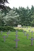Ysselsteyn German War Cemetery is a military cemetery interring casualties of the First and Second World Wars. It contains over 31,000 dead from around 25 countries, including Wehrmacht and SS-men and Dutch war criminals. This cemetery is located in the village of Ysselsteyn in the municipality of Venray in Limburg, Netherlands, and is 32 km (20 mi) east of Eindhoven. Ysselsteyn is the largest Second World War German cemetery and is the only Nazi-German cemetery in the Netherlands.[1] Following the war, the Nazi soldiers were reburied in the cemetery. The deceased include Germans, Austrians, Dutch, Poles, Russians and many who fought on the side of Nazi Germany or supported them in non-military roles.