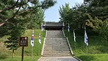 Yu became known as "Korea's Joan of Arc".[17] While the March 1 movement did not immediately gain freedom for Korea, the Japanese colonial government soon implemented more lenient political controls. Because she never abandoned her convictions even after her arrest, Yu became a symbol of the Korean independence movement through her unrelenting protests and resistance.[18] After Korea gained independence, a shrine was built in honor of Yu with the cooperation of South Chungcheong province and the city of Cheonan.[19][20] In South Chungcheong Province, an award is given in honor of Yu.[21]