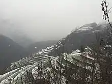 The county's northwestern portion is relatively hilly, and borders the eastern section of the Qinling Mountains.[2] Yunxi County has an average elevation of about 800 metres (2,600 ft).[2] The county's highest point reaches 1,853 metres (6,079 ft) in elevation, whereas the lowest point is just 1.57 metres (5.2 ft) above sea level.[2]