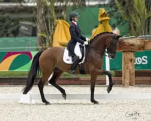 During the winter show season, she competes in the dressage shows held in Wellington, Florida.[4] During the spring and summer she competes regularly in the European circuit.